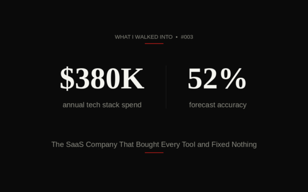 $380K a year in sales tech. Fourteen integrations. Dashboards that could fill a trading floor. Forecast accuracy: 52%. Somewhere under all that software was a revenue problem nobody had bothered to diagnose.