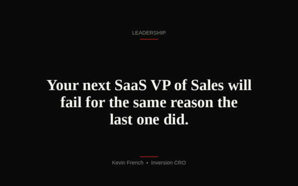 The average tenure of a SaaS VP of Sales is 18 months. Not because the talent pool is thin. Because the job is designed to be impossible.